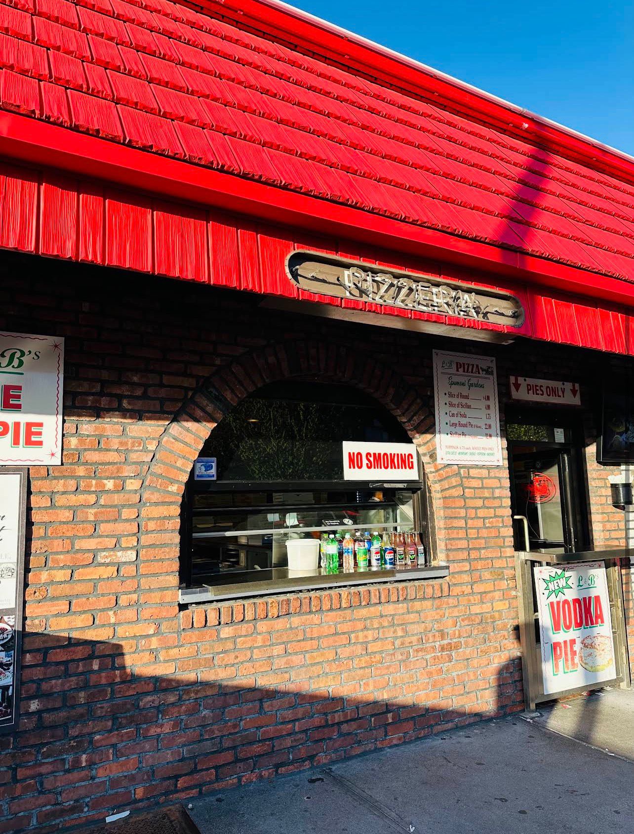 We went and got a slice of Sicilian and a slice of round. You canโt put any toppings on slices and thereโs none of the usual accoutrements: garlic powder, salt, parm, etc. The pizza still somehow tastes old and isnโt crispy on the bottom. Thereโs nowhere to sit inside so be prepared to sit outside or take your slices to go. Overall extremely underwhelmed and wouldnโt recommend.